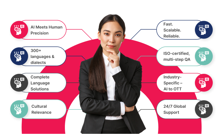 Our adherence to ISO 9001, ISO 27001, and ISO 17100:2015 standards reflects our commitment to quality and cost-effective solutions, backed by a proven track record of successful projects.